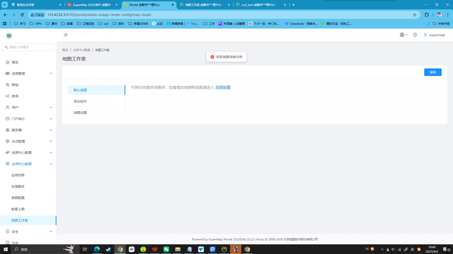 在iPortal的数据上图和地图工作室模块中,进行切换底图操作时,页面会报错。