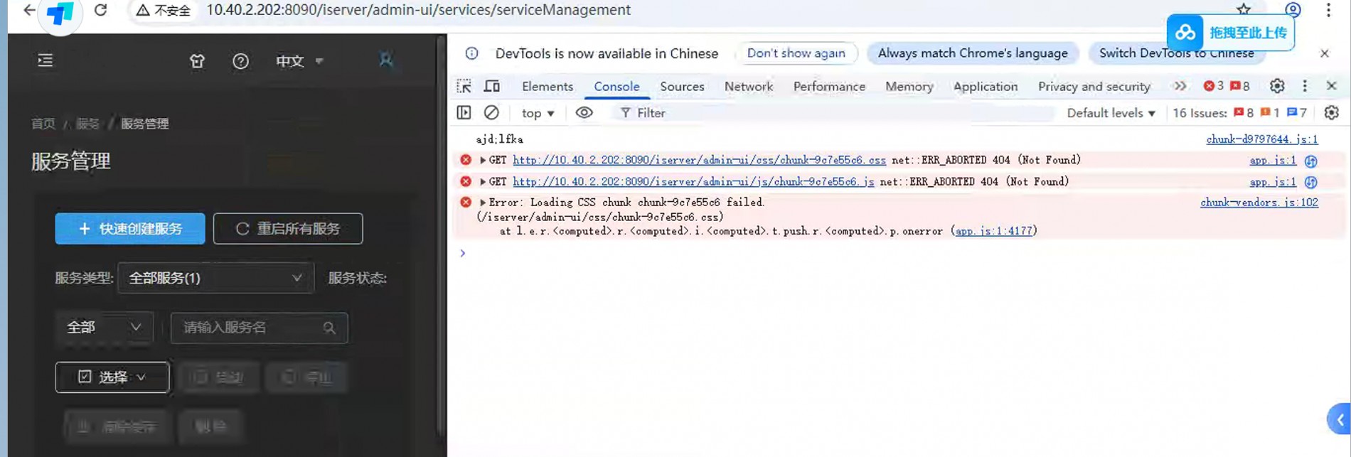 新解压的iServer 11.3版本,在快速发布服务时报错。