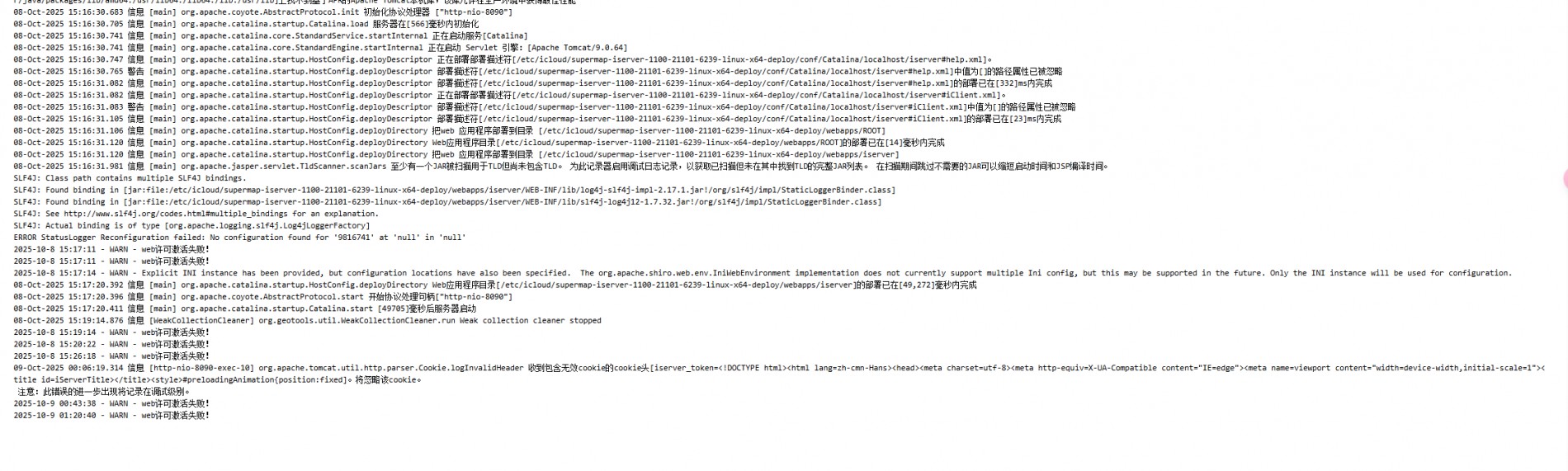 超图FAQ:请教下,iManager更新试用许可之后,访问主界面提示许可不可用跳转回许可激活界面。日志里返回了大量许可接入的信息
