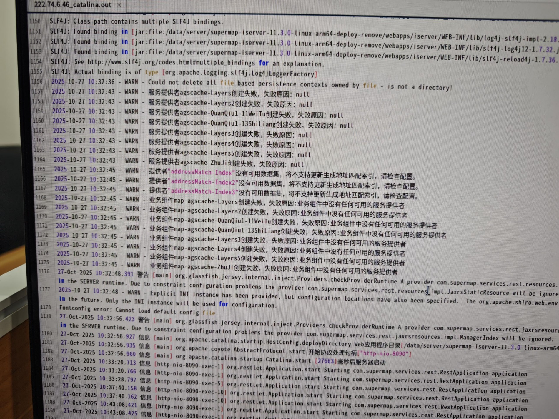 超图FAQ:部署iServer时,查看启动日志发现大量错误信息,但服务可以正常运行。