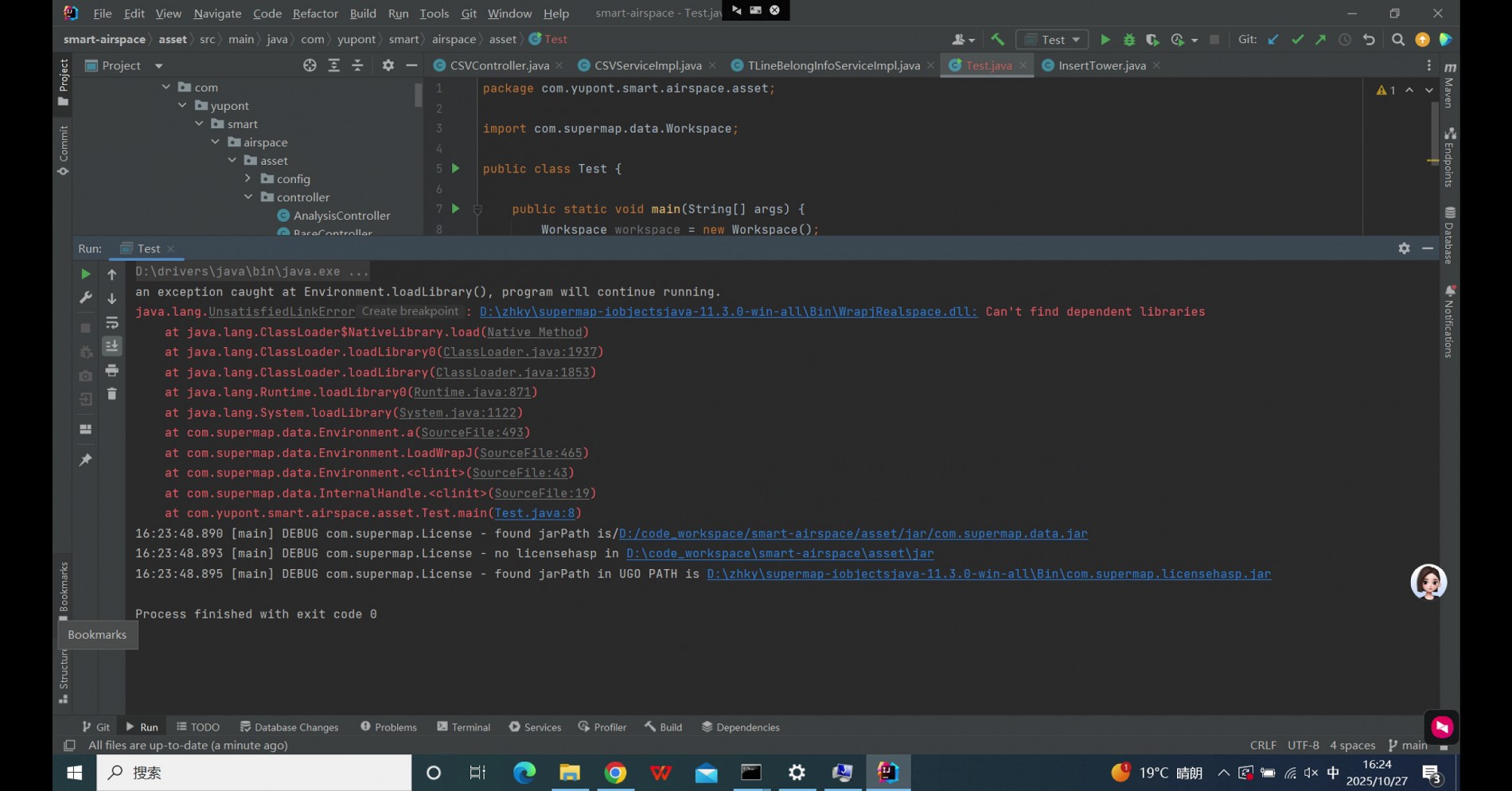 部署iObjects Java应用时,仅执行new Workspace()代码就会报错,咨询可能的原因。
