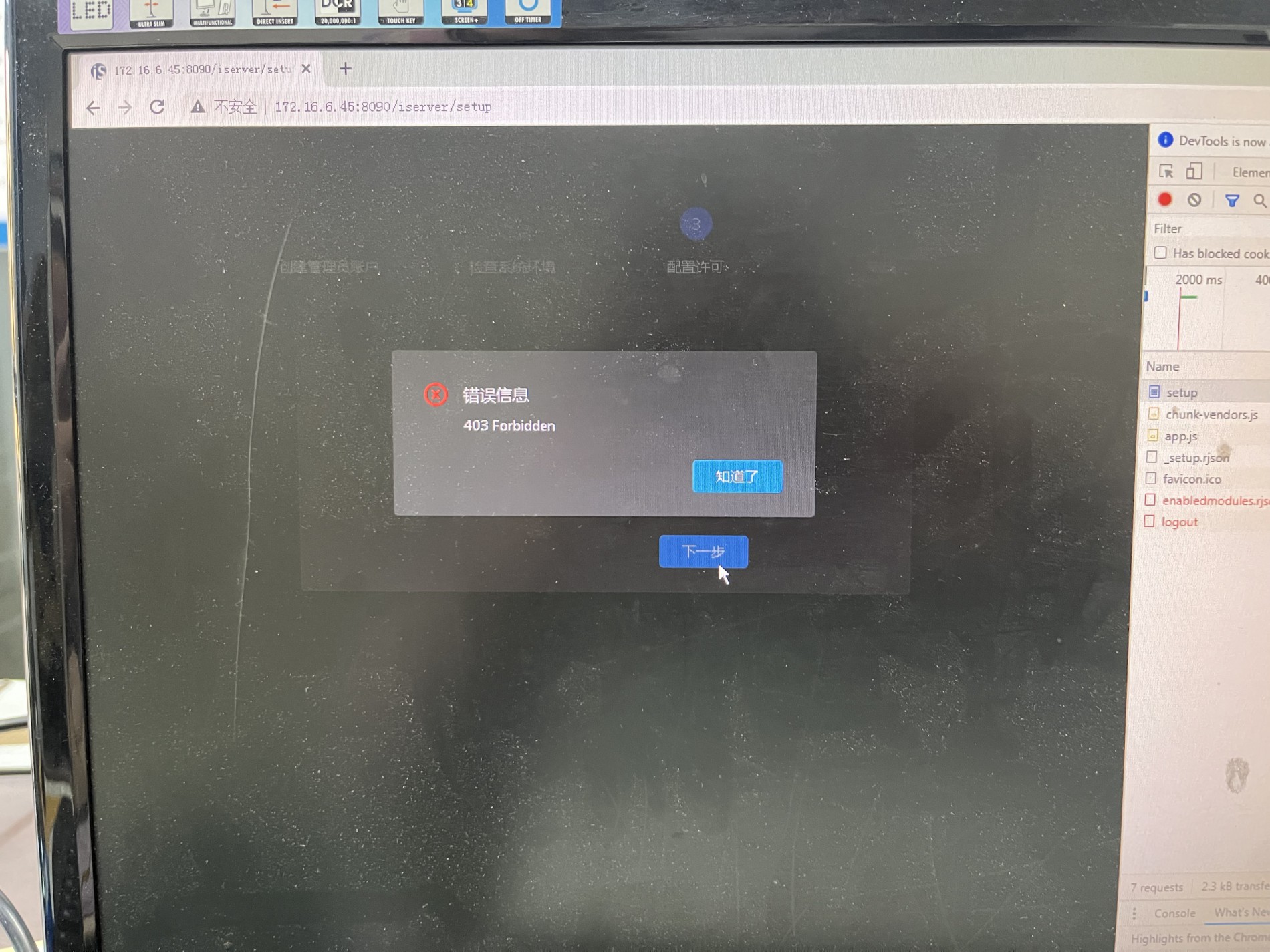 使用iServer 12.0.1的绿色免安装包,在配置许可的下一步时,页面报403错误并自动刷新。
