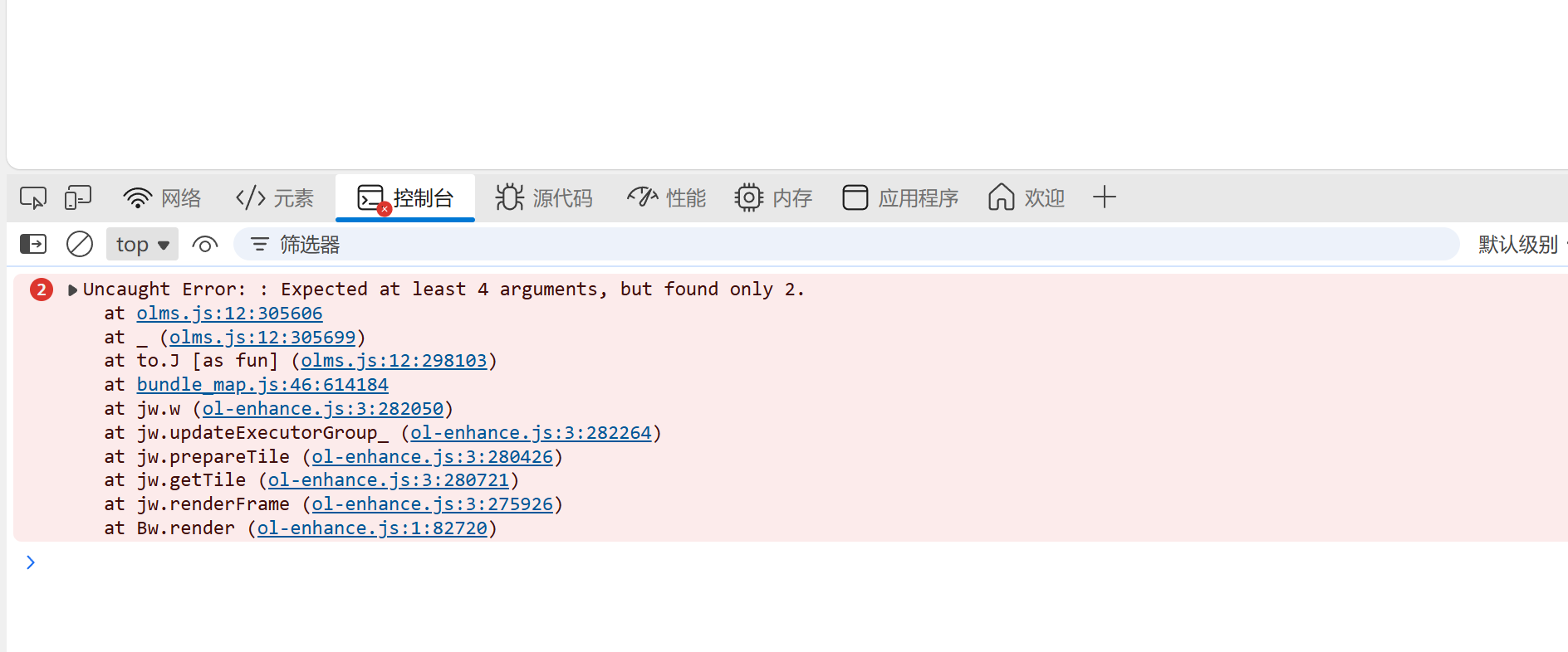 iServer发布服务后,访问for OpenLayers with MVT控制台报错,显示Uncaught Error: : Expected at least 4 arguments, but found only 2.