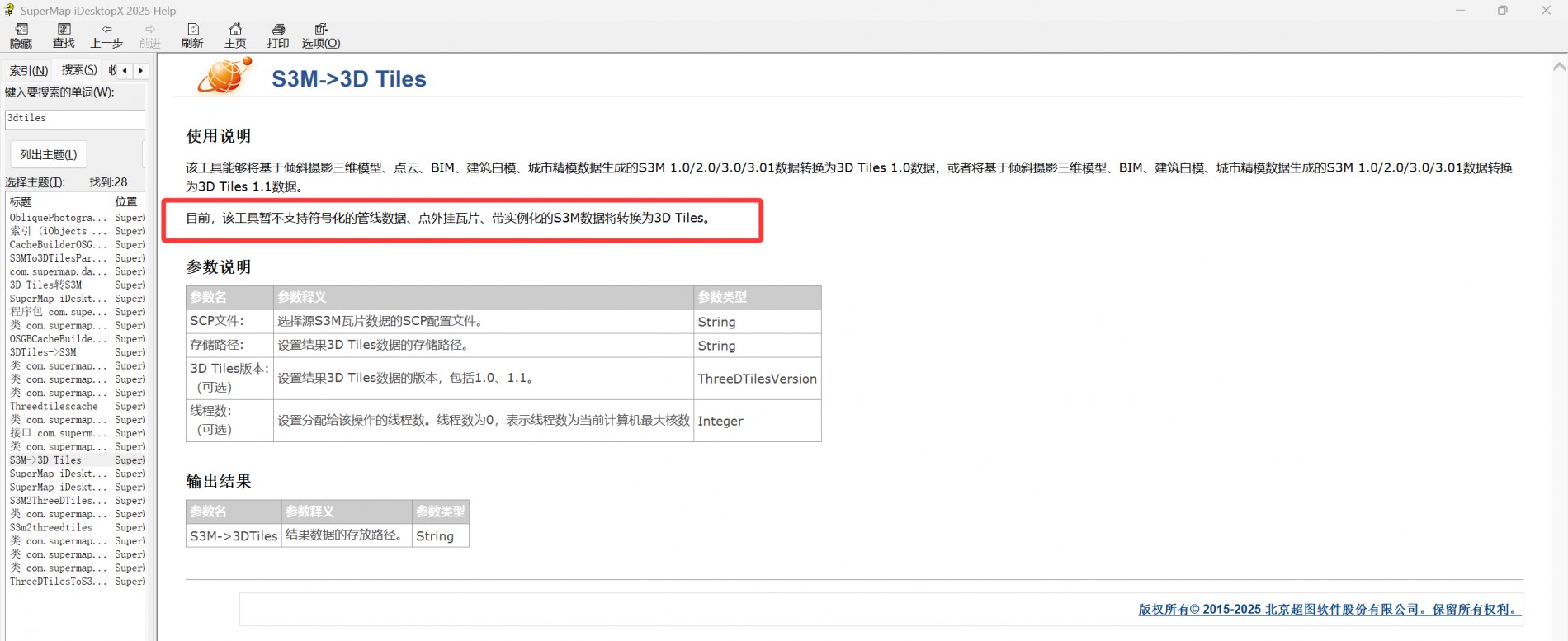 S3M->3D Tiles 工具暂不支持符号化的管线数据的 S3M 数据将转换为 3D Tiles。