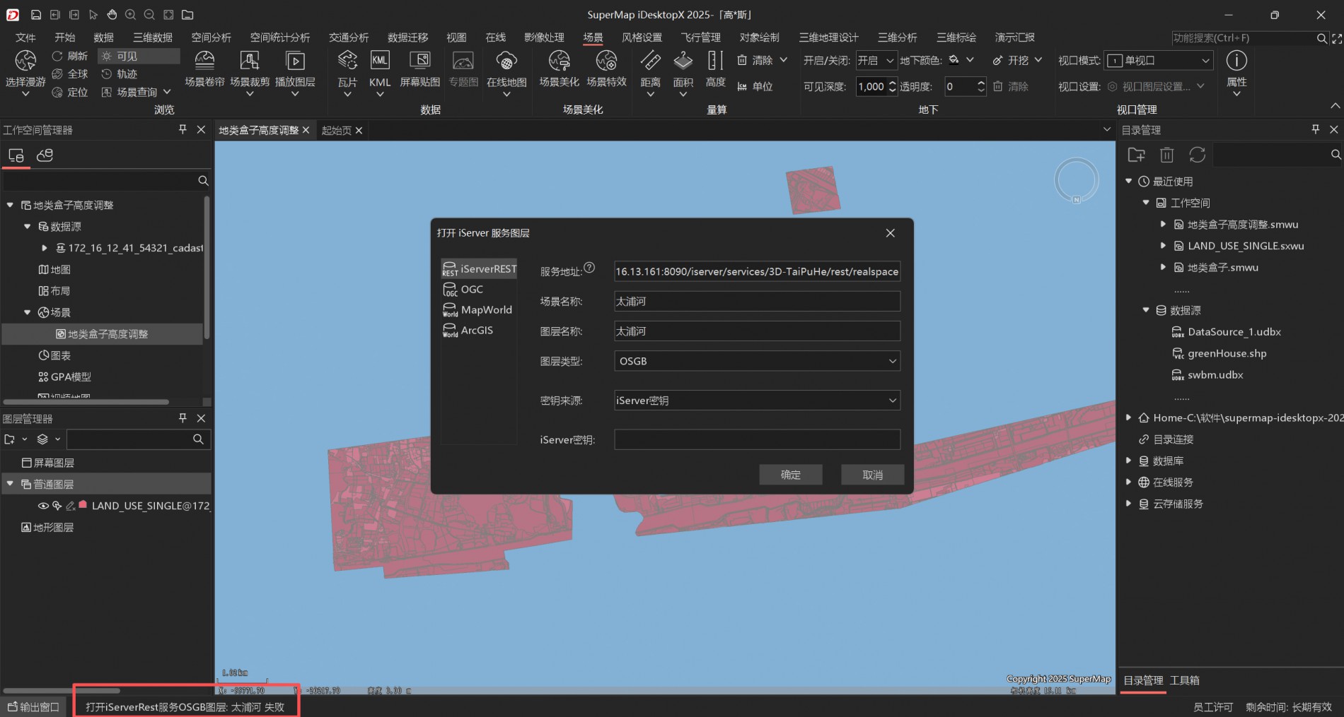 【解决办法】重启服务器。 服务器上工作空间三维服务中工作空间与三维缓存文件夹相对路径不变。