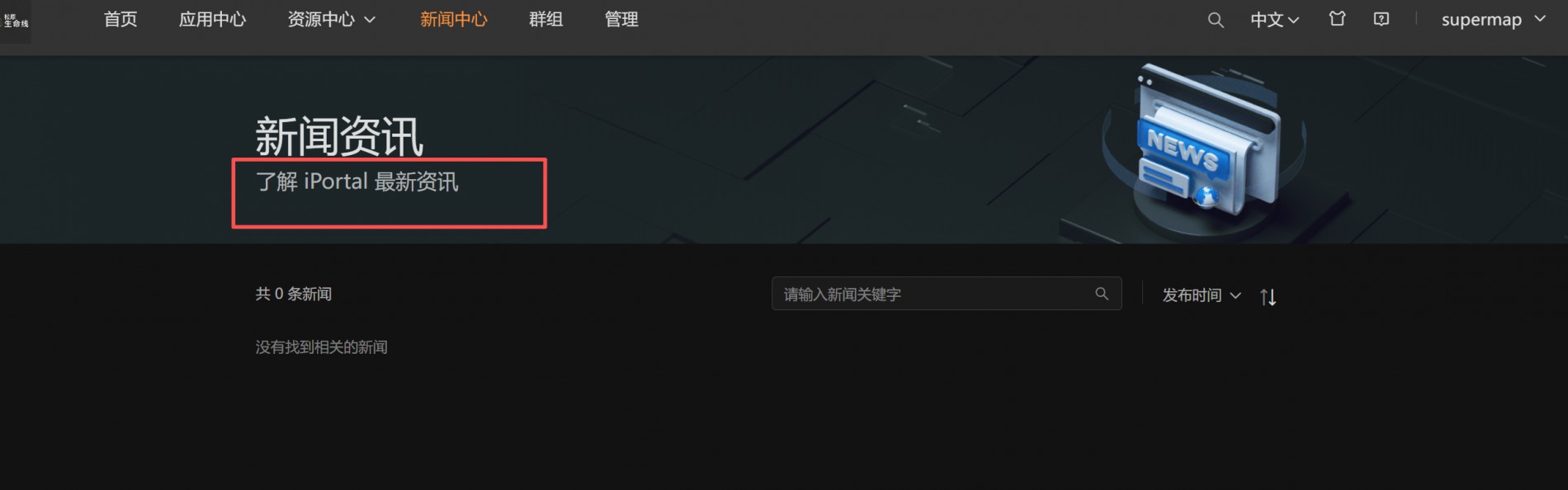 超图FAQ:咨询在iPortal 12.0.0版本中,如何将“新闻资讯”模块下的“iportal”内置文字修改为自定义文字。