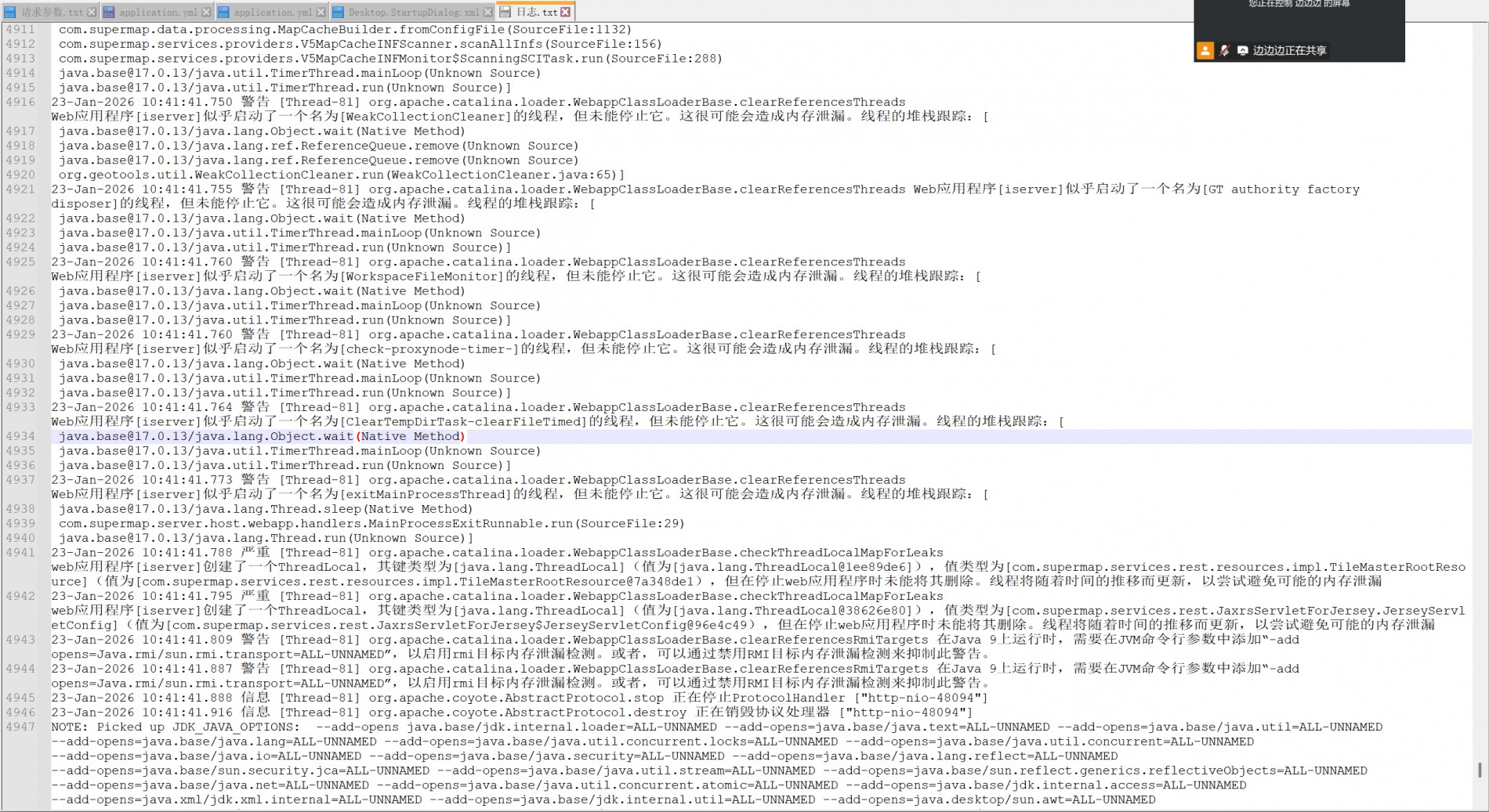 超图FAQ:iServer在运行中报告一个警告,随后服务自动重启,咨询该警告的原因。