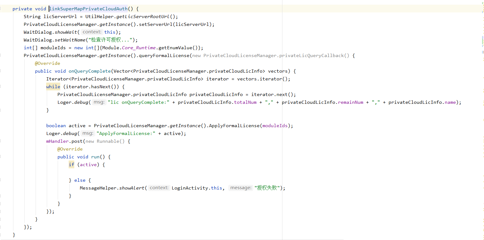 移动端代码查询许可返回正常,激活时返回结果是false,控制台日志有“I/System.out: 模块ID: 2申请失败”,请问是什么原因,需要怎么调整?
