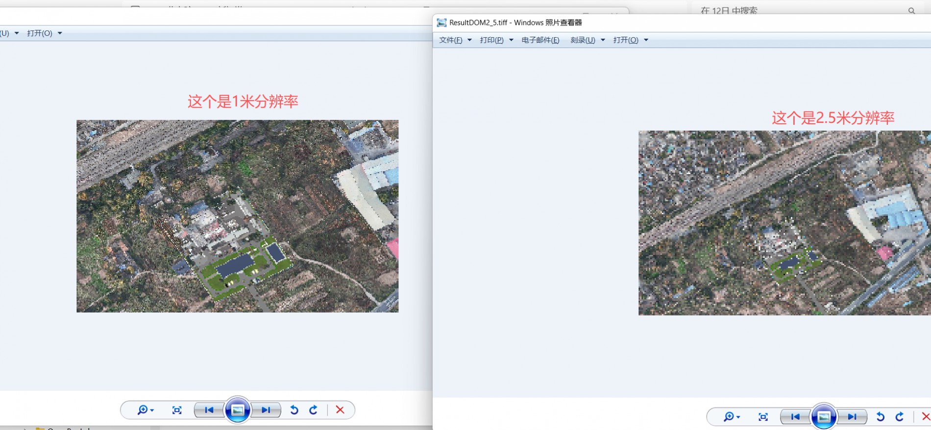 在三维场景中使用“生成DOM”功能时,生成的影像清晰度远低于原始影像,显得模糊。尝试提高分辨率或降低相机高度后,无法生成DOM或生成纯绿色图片。