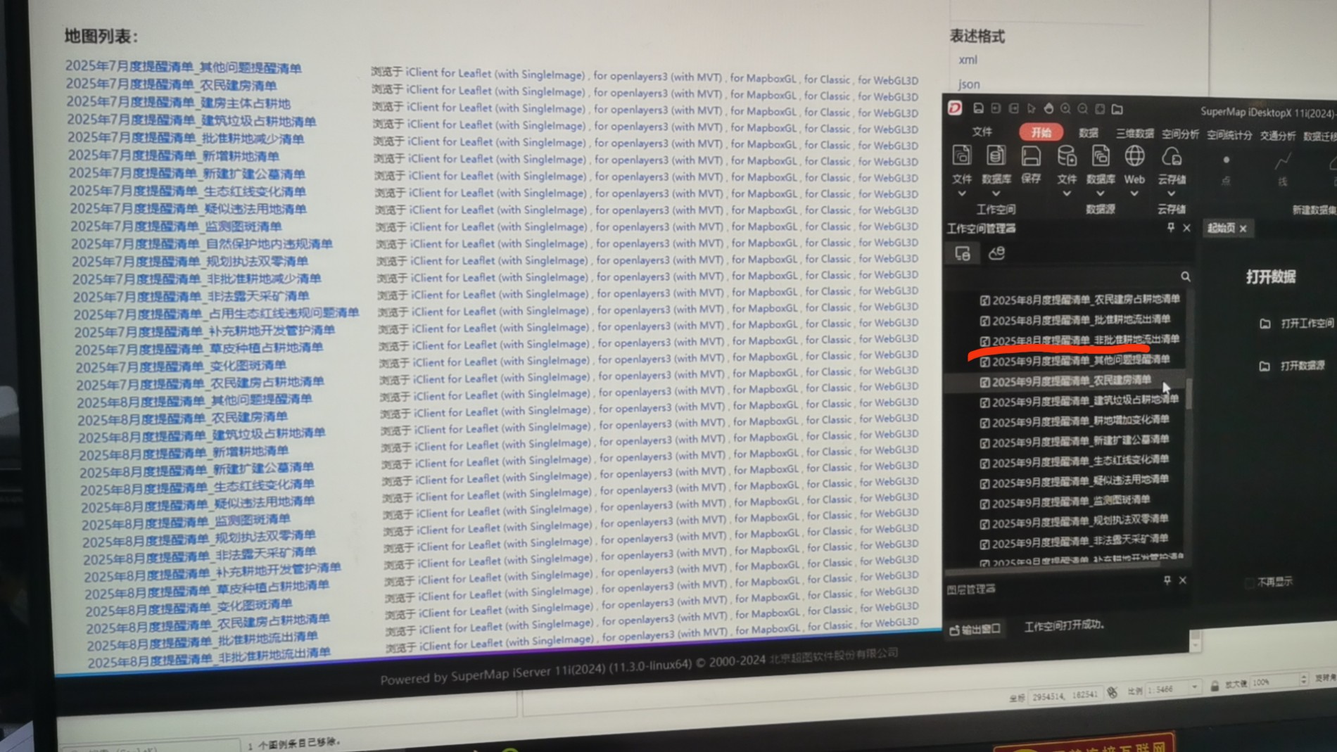 iServer中发布的工作空间服务,在刷新或重启服务后,工作空间内的部分地图未能同步显示在服务列表中,导致地图列表不完整。