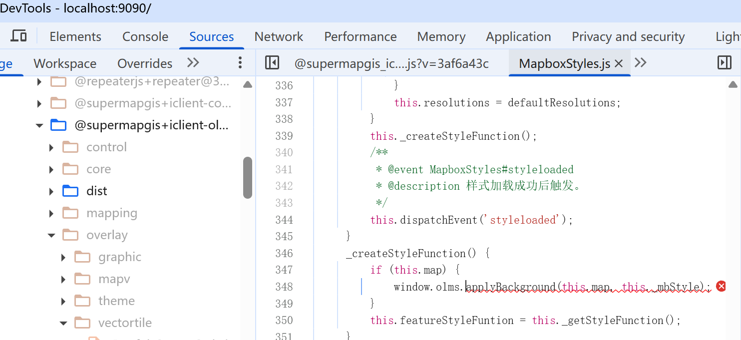 超图FAQ:通过npm方式安装并使用@supermapgis/iclient-ol包,在加载矢量切片服务时,浏览器控制台报错window.olms未定义,导致图层添加失败。