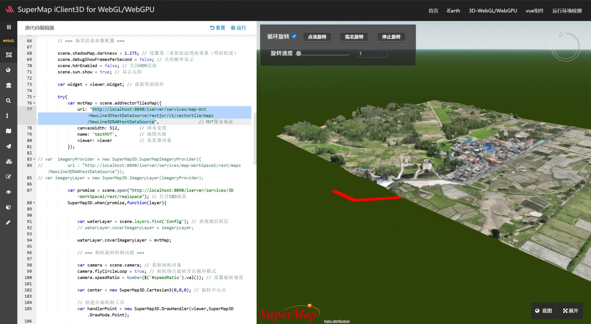 在iClient3D for WebGL/WebGPU 12.0.1版本中,将地图服务贴到倾斜摄影模型上可以成功,但尝试将MVT矢量瓦片服务贴到模型上时却无法显示。