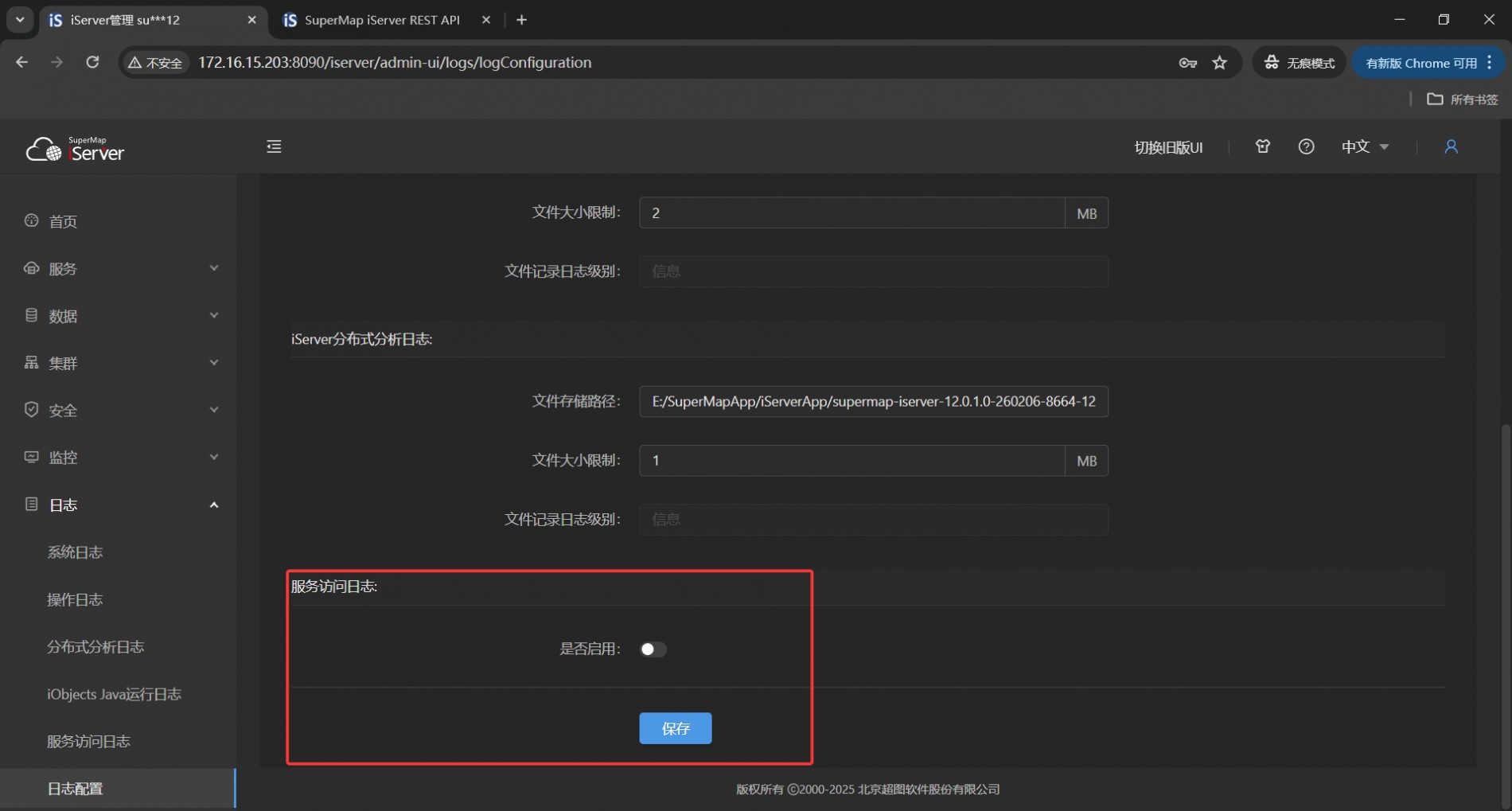 超图FAQ:iServer服务管理页面的“服务访问统计”功能开启后,只能查询到最近几天的访问记录,无法查询更早的历史访问日志。