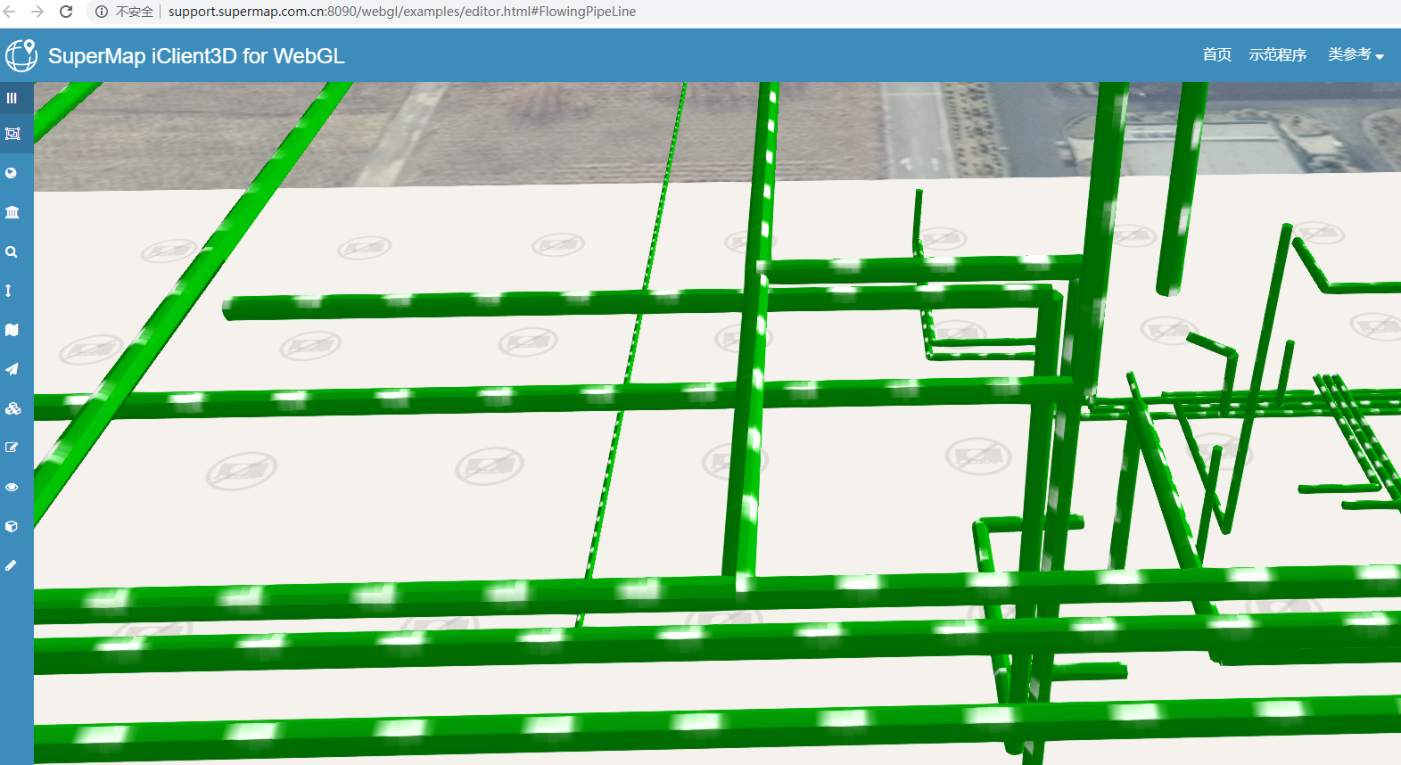 4、你们webgl实例中的流动管线也是通过加载三维场景服务实现的,管线流动效果是正常的。