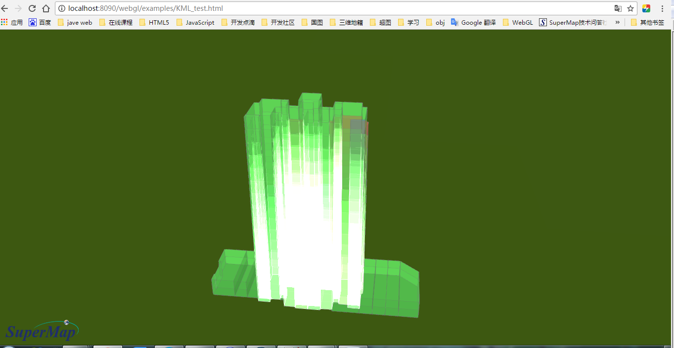 好的,谢谢。还有个问题想请教您。上图为在ArcScene中拉伸后的三维,并赋予了不同的颜色来进行渲染。在将三维物体转成KML后,使用WebGL来加载转换后的KML文件,下图为加载后结果,三维物体显示有问题,能有什么方法解决此问题呢?