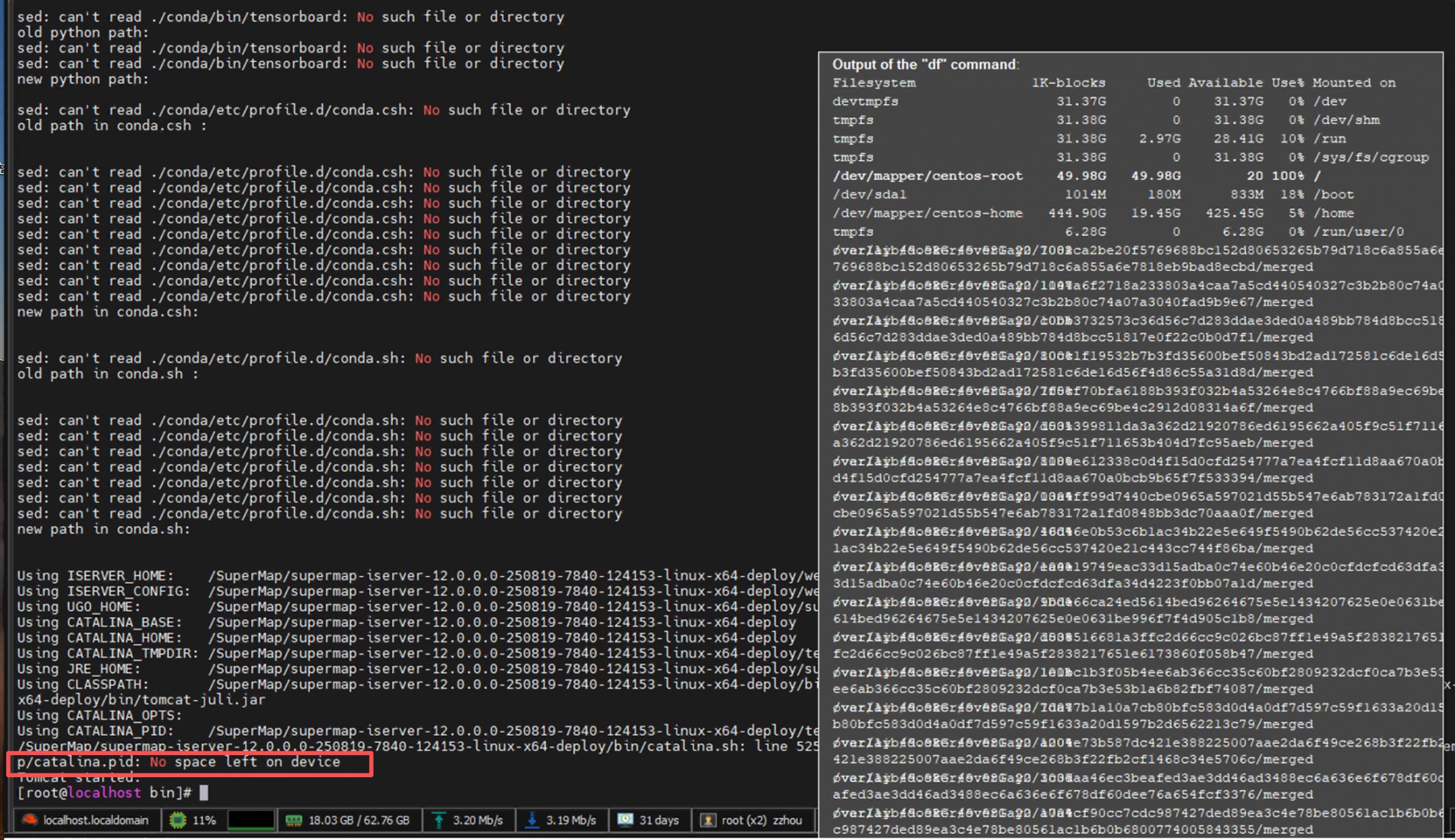 【解决办法】并非SuperMap系列产品产生临时文件导致,是iServer和AgetnX部署的目录本身剩余空间有限,建议更改合适的目录重新部署。